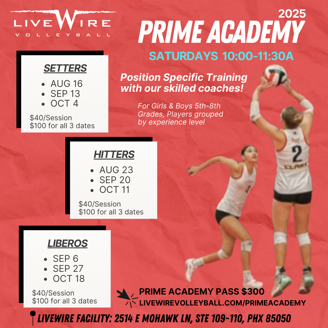 This academy is designed to develop athletes in position specific aspects of the game. Whether you are a beginner, or more developed in your position, Prime Academy will help you grow your game.